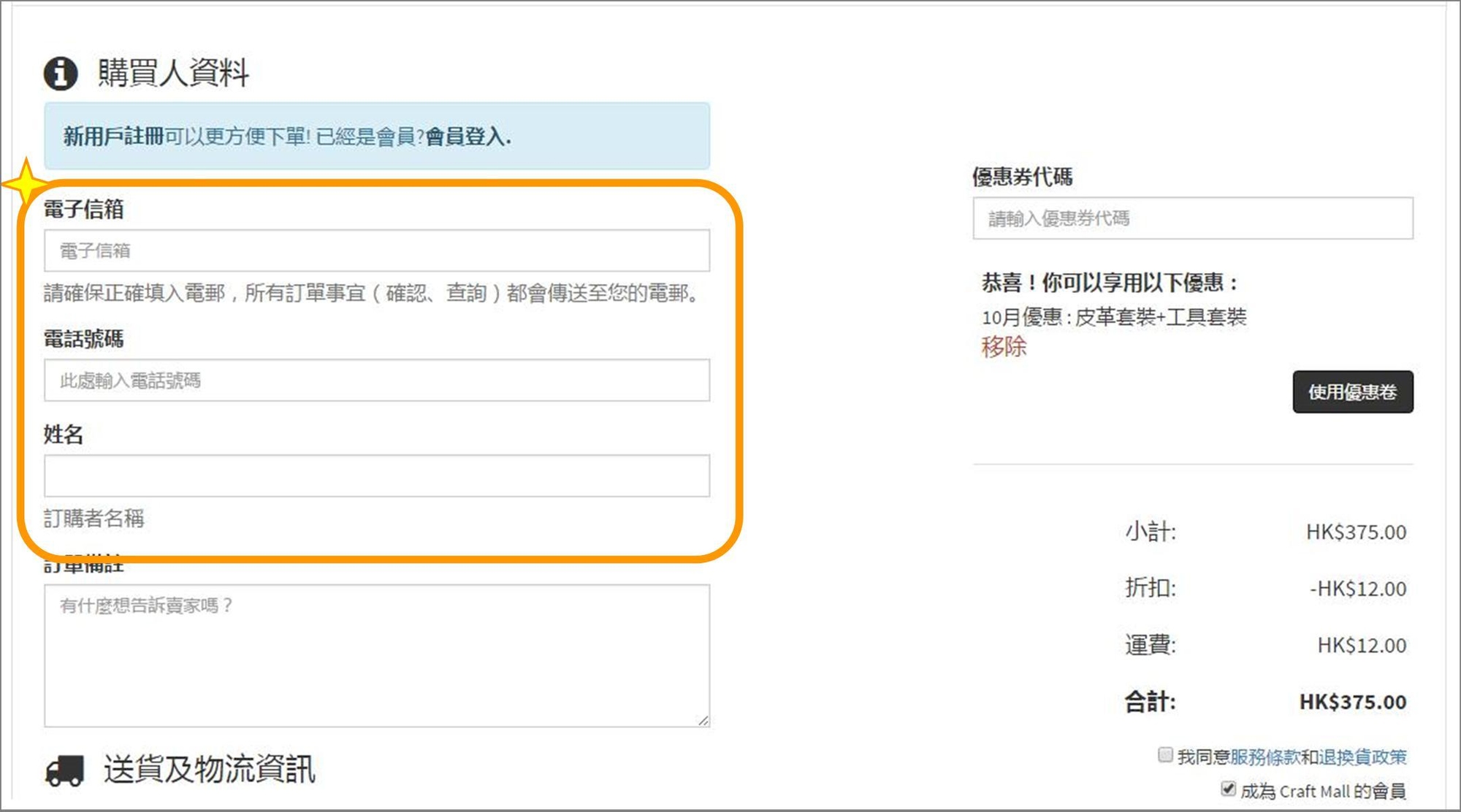電子信箱:請確保輸入正確,所有訂單資料及送貨情況更新均會經電郵通知。