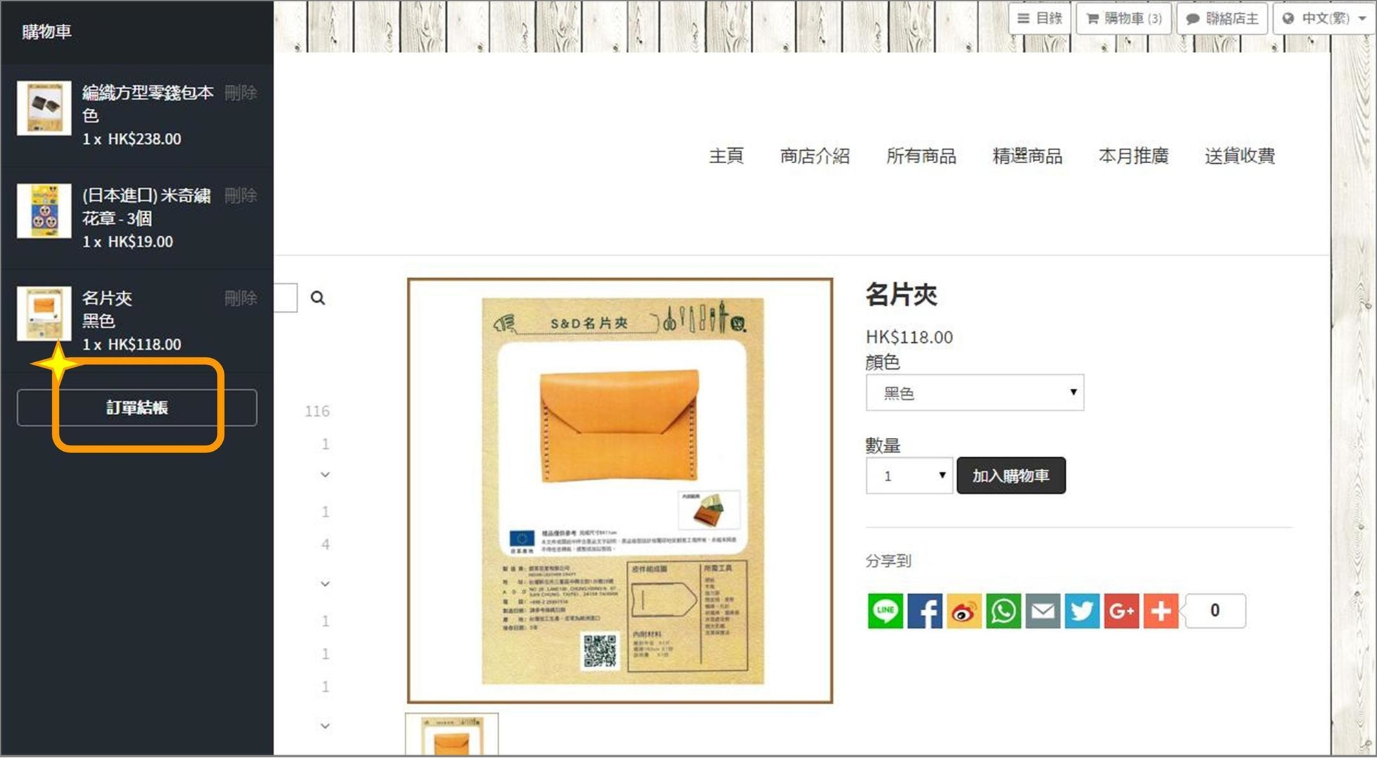 把喜歡的產品放進購物車,只需要在產品頁中按 [加入購物車]。