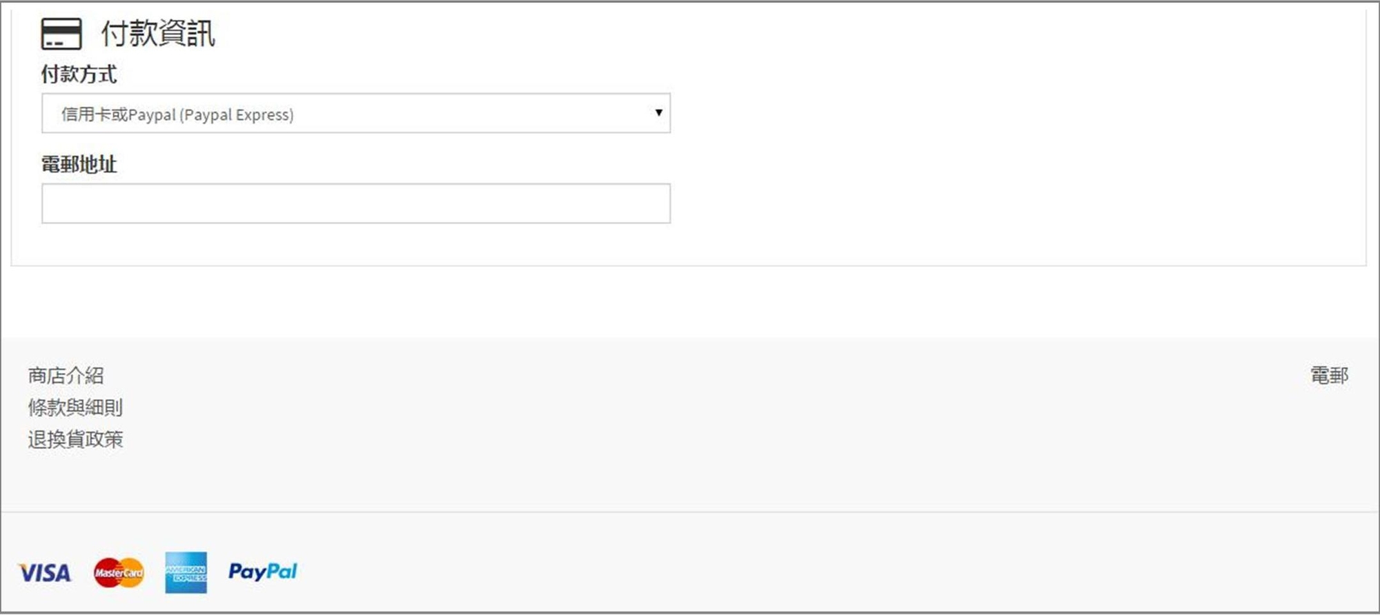 電郵地址:Paypal用以聯絡閣下有關交易詳情。