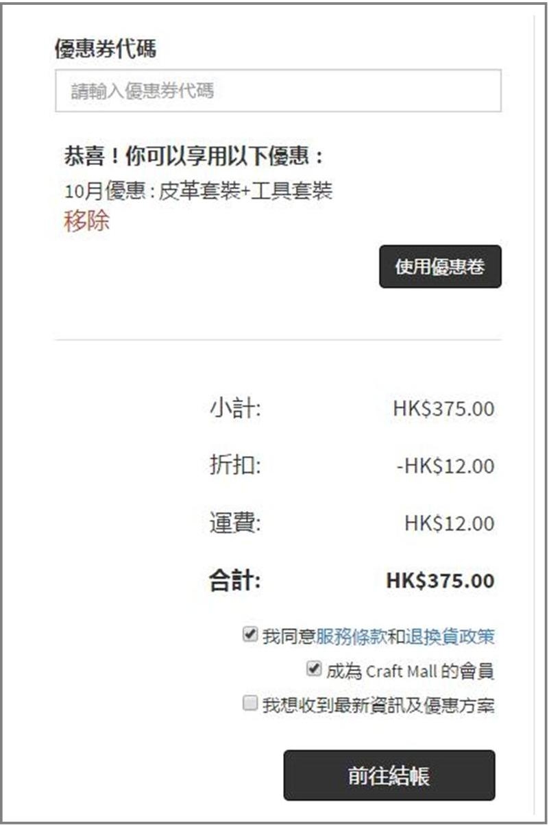 系統會自動計算並列出閣下這次購物可享之優惠,並於下面計算清單中顯示。