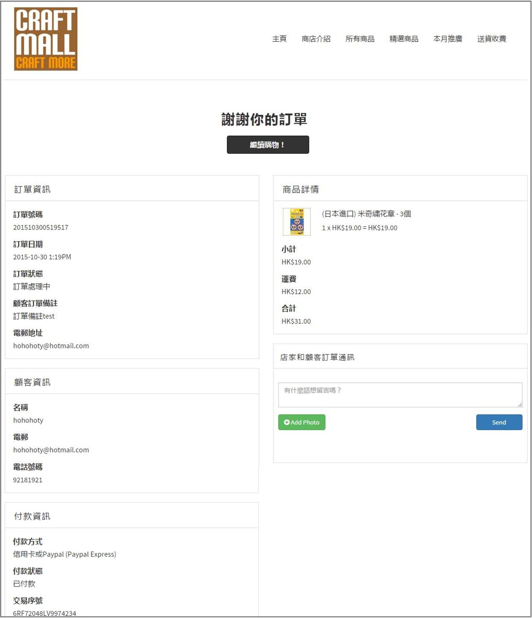 Craft Mall:付款完成,可於Craft Mall查看訂單內容。如有疑問或查詢,可於訂單頁提出,我們會盡快回覆。